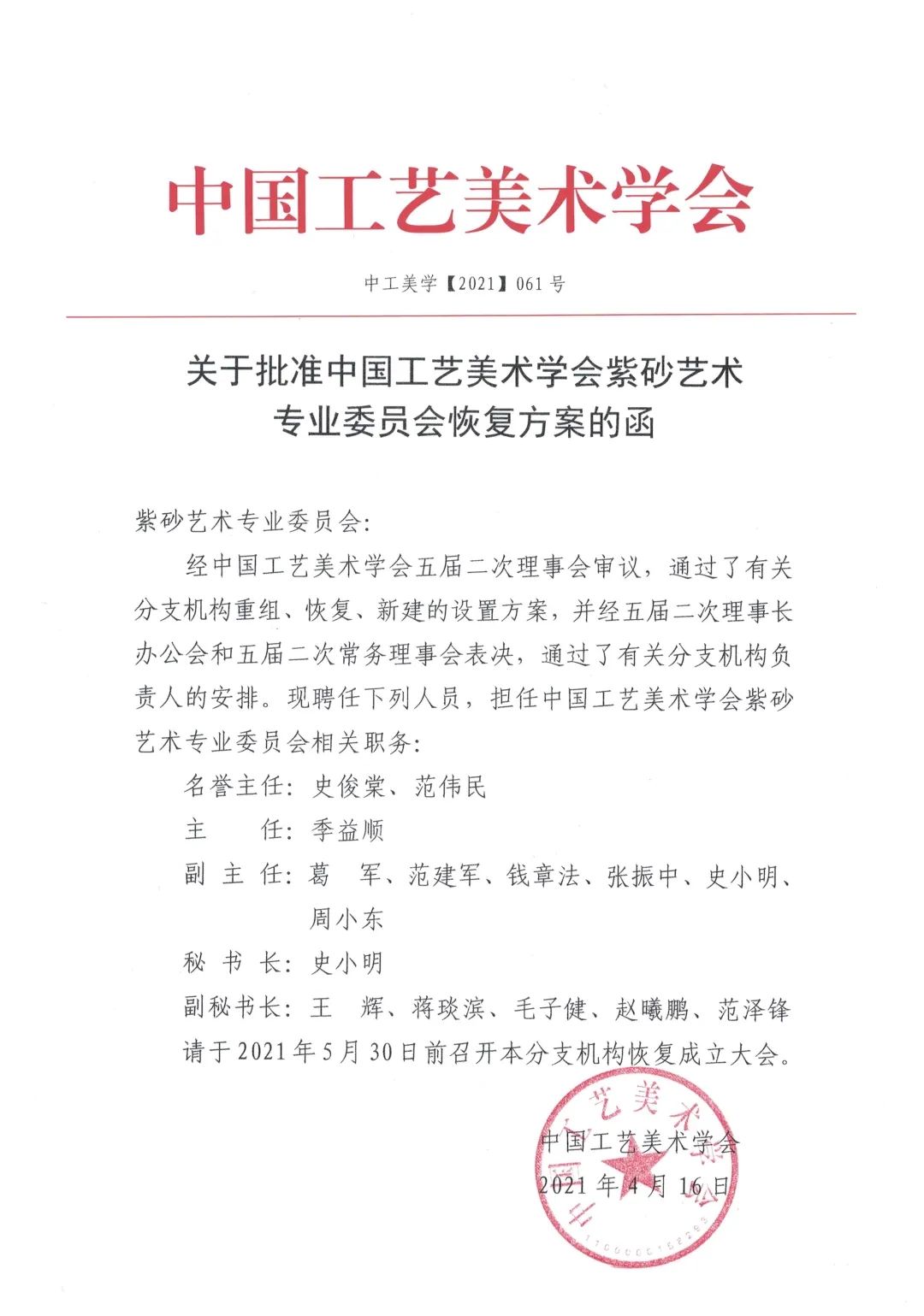 随着行业的不断发展,对从业人员的相关要求也越来越高。为了进一步推动紫砂文化艺术的发展,提升对紫砂工艺和紫砂艺术的研究,促进行业间的学术交流和学会会员之间的互动,利于紫砂行业高质量发展的要求,现根据国家科协关于二级学会专业化、精细化管理的要求,中国工艺美术学会决定重新恢复紫砂艺术专业委员会和理论研究专业委员会的工作。审时度势,恢复这项工作具有必要性、重要性以及深远的意义。